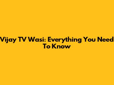 Vijay TV Wasi: Everything You Need To Know