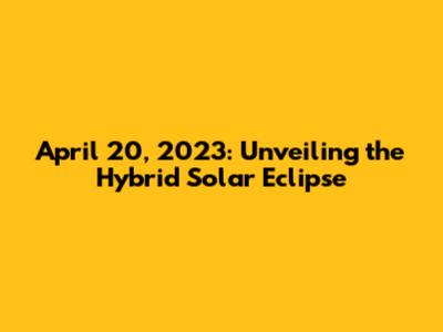 Hey guys! Ever wondered what celestial events graced the skies on a particular date? Let's zoom in on April 20, 2023. This date wasn't just any regular day; it was the stage for a spectacular cosmic dance – a hybrid solar eclipse! I know, the name might sound a bit fancy, but trust me, it's super cool. Basically, a hybrid solar eclipse is a rare blend of a total and annular solar eclipse. This means that, depending on your location, you might have witnessed the sun completely blocked out by the moon (total eclipse) or seen a fiery ring of sunlight around the moon (annular eclipse). Isn't that wild? Before we dive deeper, let's understand the basics of what makes an eclipse, well, an eclipse. It's all about alignment, people! Solar eclipses happen when the moon passes between the sun and Earth, casting a shadow on our planet. The type of eclipse we see depends on the moon's position in its orbit and how it aligns with the sun and Earth.