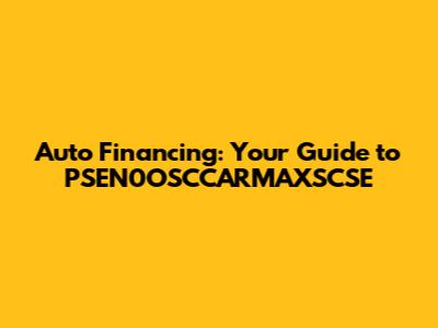 Navigating the world of auto financing can feel like trying to decipher a secret code, especially when you're faced with unfamiliar terms like PSEN0OSCCARMAXSCSE. Don't worry, guys! This comprehensive guide will break down everything you need to know about auto financing, demystify those complicated terms, and help you make informed decisions when purchasing your next vehicle. We'll explore the key aspects of securing a car loan, understanding interest rates, and even touch upon how dealerships like Carmax fit into the picture. So buckle up, and let's dive into the world of auto financing!
