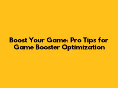 Optimizing Your Game Booster for Peak Performance