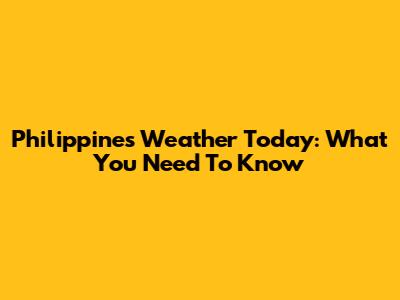 Philippines Weather Today: What You Need To Know