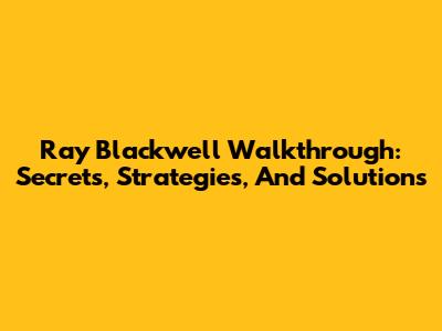 Ray Blackwell Walkthrough: Secrets, Strategies, And Solutions