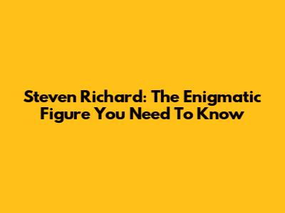 Steven Richard: The Enigmatic Figure You Need To Know