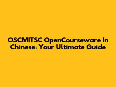 OSCMITSC OpenCourseware In Chinese: Your Ultimate Guide