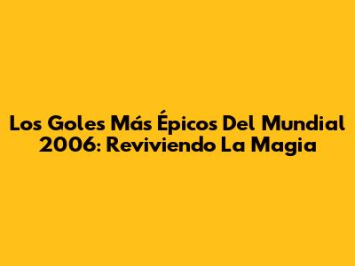 Los Goles Más Épicos Del Mundial 2006: Reviviendo La Magia