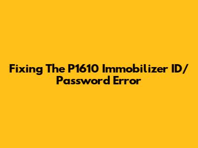 Fixing The P1610 Immobilizer ID/Password Error