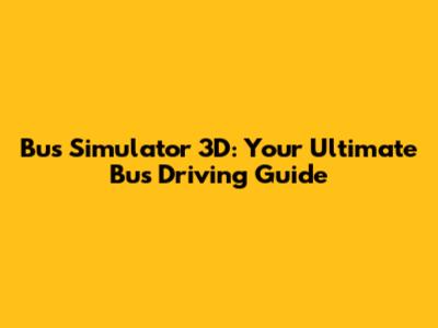 Bus Simulator 3D: Your Ultimate Bus Driving Guide