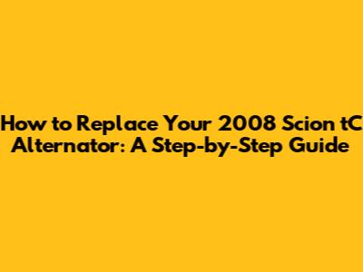 Hey guys! So, your 2008 Scion tC's alternator has decided to call it quits, huh? Don't sweat it – replacing it is totally doable for a DIY enthusiast. This guide will walk you through the entire process of 2008 Scion tC alternator removal, making it as smooth and painless as possible. We'll cover everything from gathering your tools to getting that shiny new alternator installed. Let's get started!
