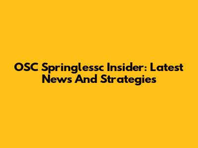 OSC Springlessc Insider: Latest News And Strategies