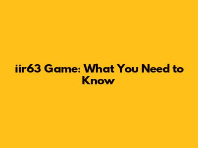 Why the iir63 Game Could Be Your Next Favorite