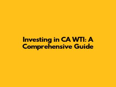 Hey guys! Today, we're diving deep into the exciting world of investing in CA WTI. If you've been hearing about this and wondering what it's all about, you've come to the right place. We're going to break down exactly what CA WTI is, why it's a hot topic for investors, and how you can potentially get involved. This isn't just about throwing money around; it's about understanding a crucial part of the energy market and how it impacts global economies. So, buckle up, and let's get started on this investment journey!