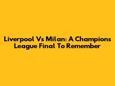 Liverpool Vs Milan: A Champions League Final To Remember