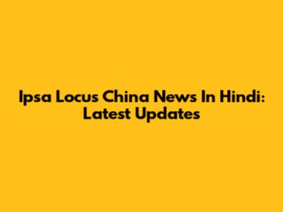 Ipsa Locus China News In Hindi: Latest Updates