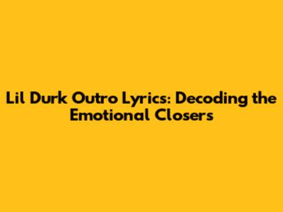 In conclusion, Lil Durk's outro lyrics are much more than just afterthoughts; they are integral components of his artistic expression. These introspective and emotionally charged segments offer invaluable insights into his personal journey, struggles, and aspirations. By examining common themes, lyrical techniques, and standout examples, we gain a deeper appreciation for the artistry and emotional depth that Durk brings to his music. His ability to connect with listeners on a personal level through raw honesty and vulnerability has solidified his position as a prominent voice in contemporary hip-hop. For fans and critics alike, Lil Durk's outros are a testament to his talent, his authenticity, and his unwavering commitment to sharing his story with the world. As he continues to evolve and push boundaries, his outro lyrics will undoubtedly remain a defining characteristic of his unique and compelling artistry.