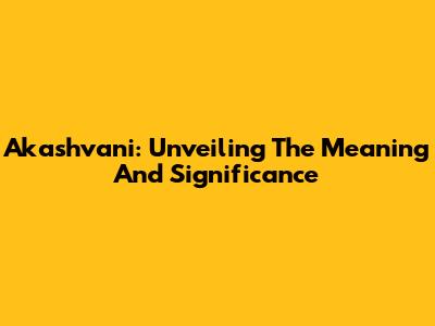 Akashvani: Unveiling The Meaning And Significance