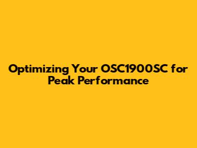 Hey everyone! Today, we're diving deep into the world of the OSC1900SC, a piece of tech that, when dialed in just right, can seriously level up your game. We're going to break down how to get the absolute most out of this bad boy, ensuring it runs smoother, faster, and more efficiently than ever before. Think of this as your ultimate guide to unlocking its full potential. We'll cover everything from initial setup tweaks to advanced optimization strategies that even seasoned pros might overlook. So, buckle up, guys, because we're about to turn your OSC1900SC from a good performer into a legendary one. We're talking about maximizing every single feature, understanding its nuances, and making sure it seamlessly integrates into your workflow, whatever that may be. Whether you're using it for creative projects, demanding simulations, or just everyday heavy lifting, the principles we'll discuss are universally applicable. Get ready to transform your experience and wonder why you didn't optimize it sooner. This isn't just about making it faster; it's about making it smarter, more responsive, and ultimately, more valuable to you. Let's get started on this journey to peak performance.