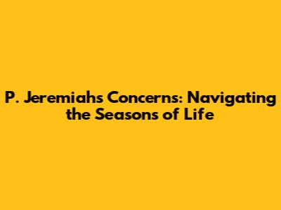 Now, here's where it gets interesting: how does P. Jeremiah actually approach these challenges? Is he facing them head-on, or is he attempting to ignore them? Does he have a strong support system, or is he feeling isolated and alone? Does he try to maintain a healthy lifestyle, or is he in denial? These questions help us to understand his mindset.