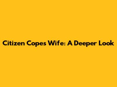 Citizen Cope's Wife: A Deeper Look