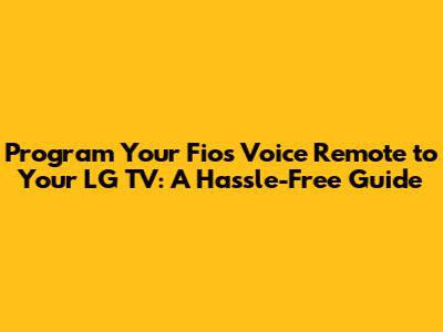 Hey guys! So, you've got that awesome Fios Voice Remote and a slick LG TV, but you're wondering how to get them to play nice together? You're in the right spot! We're going to walk through the super simple steps to program your Fios voice remote to your LG TV. It’s not as complicated as it sounds, and once you're done, you'll be controlling your TV with just your voice and the convenience of a universal remote. Seriously, ditching multiple remotes is one of life's little joys, right? This guide is all about making that happen for you, ensuring a smooth and seamless entertainment experience. Let's dive in and get your Fios remote talking to your LG TV so you can get back to what matters – enjoying your favorite shows and movies!