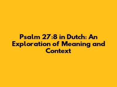 In contemporary Dutch society, where secularism is on the rise, Psalm 27:8 continues to hold relevance for many believers. It serves as a reminder to stay focused on God amidst the distractions and pressures of modern life. The verse encourages individuals to actively seek God's presence, even when it may seem difficult or challenging.