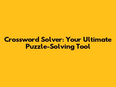 Crossword Solver: Your Ultimate Puzzle-Solving Tool