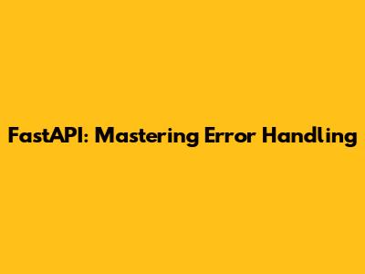 FastAPI: Mastering Error Handling