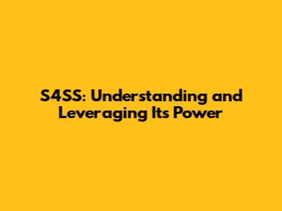 So, what makes S4SS so special? Let’s explore some of its key features: