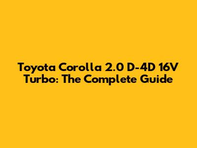 Understanding the Toyota Corolla 2.0 D-4D 16V Turbo
