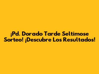 ¡Pd. Dorado Tarde Seltimose Sorteo! ¡Descubre Los Resultados!