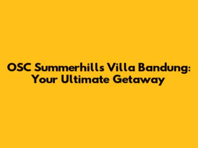 OSC Summerhills Villa Bandung: Your Ultimate Getaway