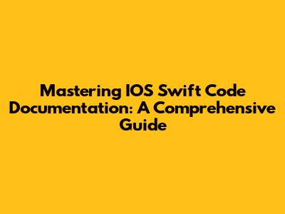 Mastering IOS Swift Code Documentation: A Comprehensive Guide