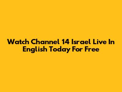 Watch Channel 14 Israel Live In English Today For Free