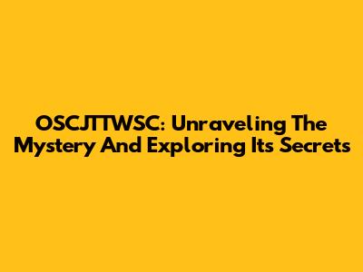 OSCJTTWSC: Unraveling The Mystery And Exploring Its Secrets