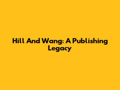 Hill And Wang: A Publishing Legacy